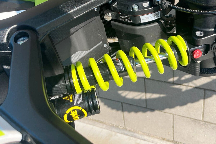 The rear suspension adopts adjustable KKE airbags for shock absorption, with a stroke of 230mm, providing reliable protection for riders to conquer unknown roads.